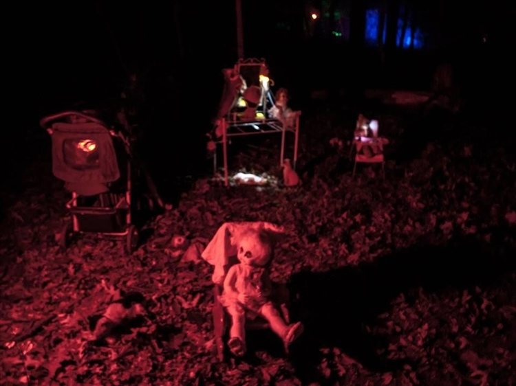 Wel, no spoilers for this year will be offered here. We do use animatronic props in some of our scenes. Some of the we build ourselves. I personally like building and designing props. Additionally, I love planning each year's trail and then making the scenes come to life. Lighting is key to a good scare!