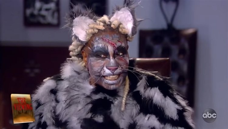 Whoopie Goldberg dressed up as the undead cat, Church, from Pet Sematary.